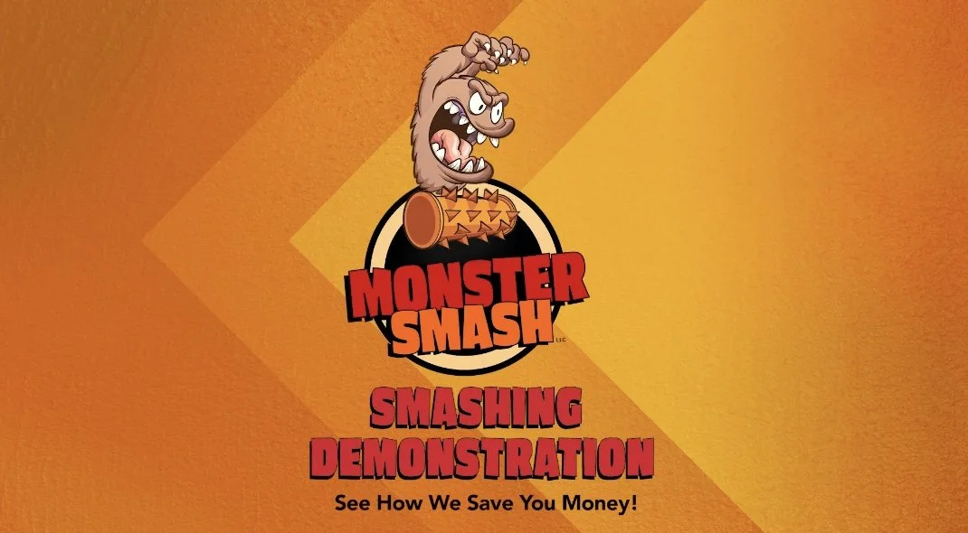Monster Smash is a company that reduces trash volume in dumpsters by crushing the contents using a truck with a 3-ton spinning roller blade drum. Customers are then able to get 2 to 3 times more trash content in their dumpsters - saving them time as well as up to 40% in dumpster fees and waste management costs.